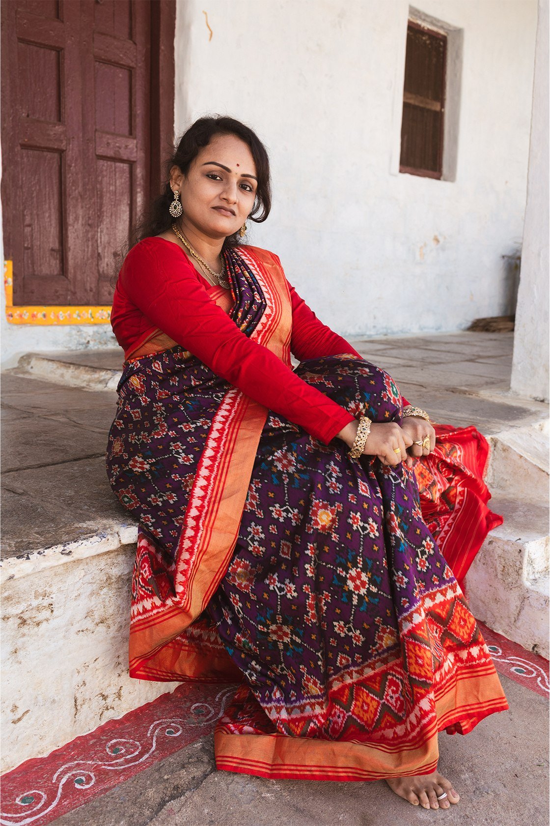 The bold pallu, rich border, and detailed ikat floral body make it perfect for weddings, cultural celebrations, or heirloom gifting.